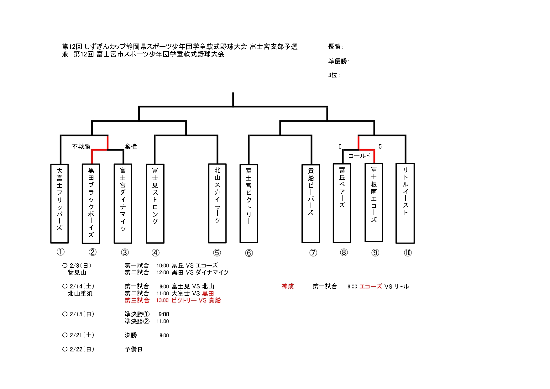 第15回JA富士宮旗争奪学童軟式野球富士宮大会のトーナメント表(PDF)