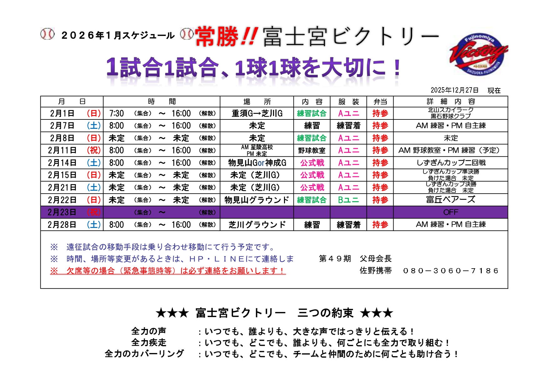 2020年度 富士宮野球連盟少年部 年間スケジュール